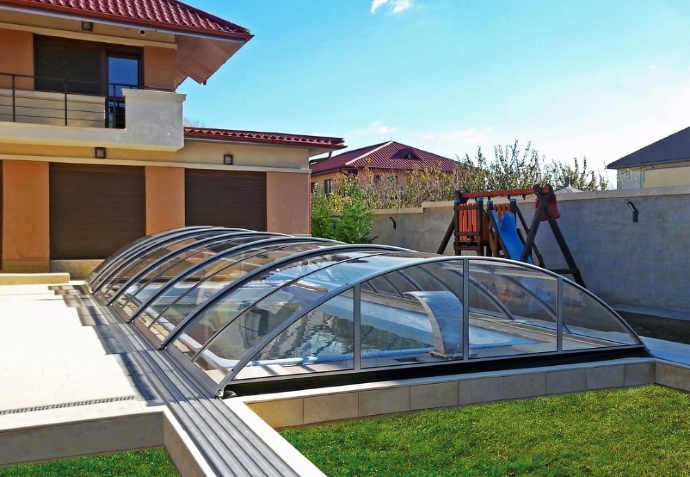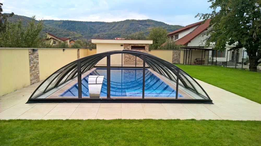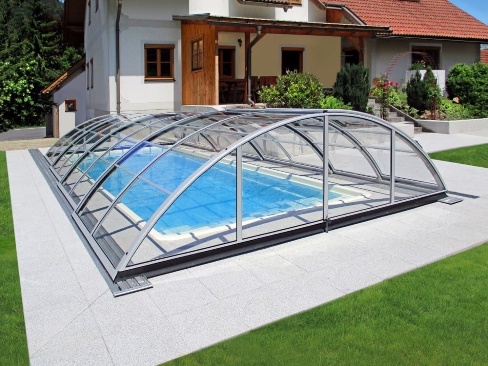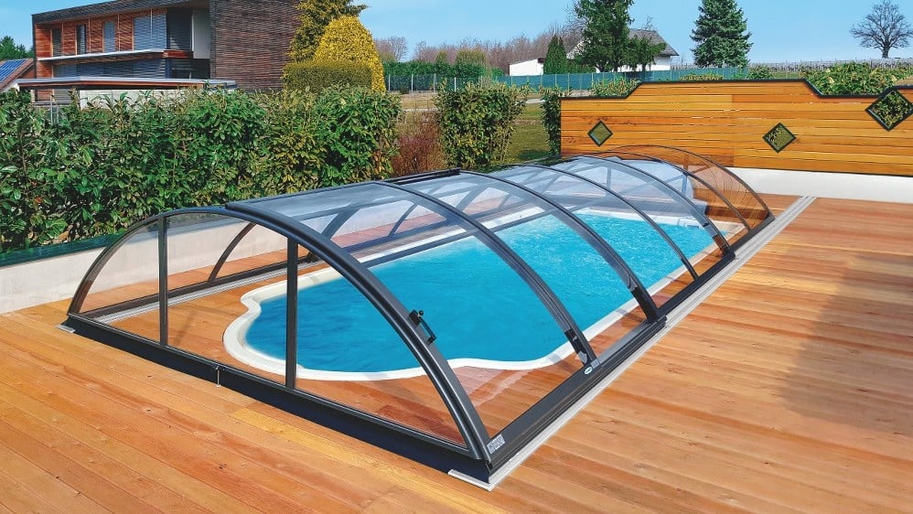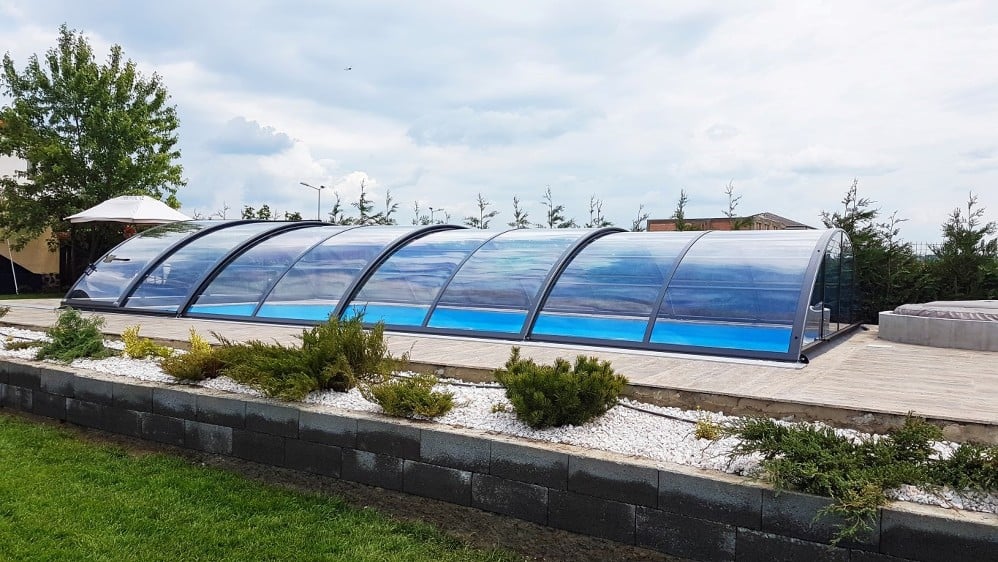 Využívá výhody jednoho radiusu hliníkových profilů – zastřešení tak vypadá velmi elegantně.
